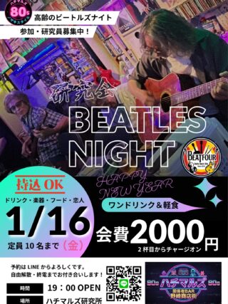 1/16(金)「高齢のビートルズナイト」研究員を募集しちゃいます